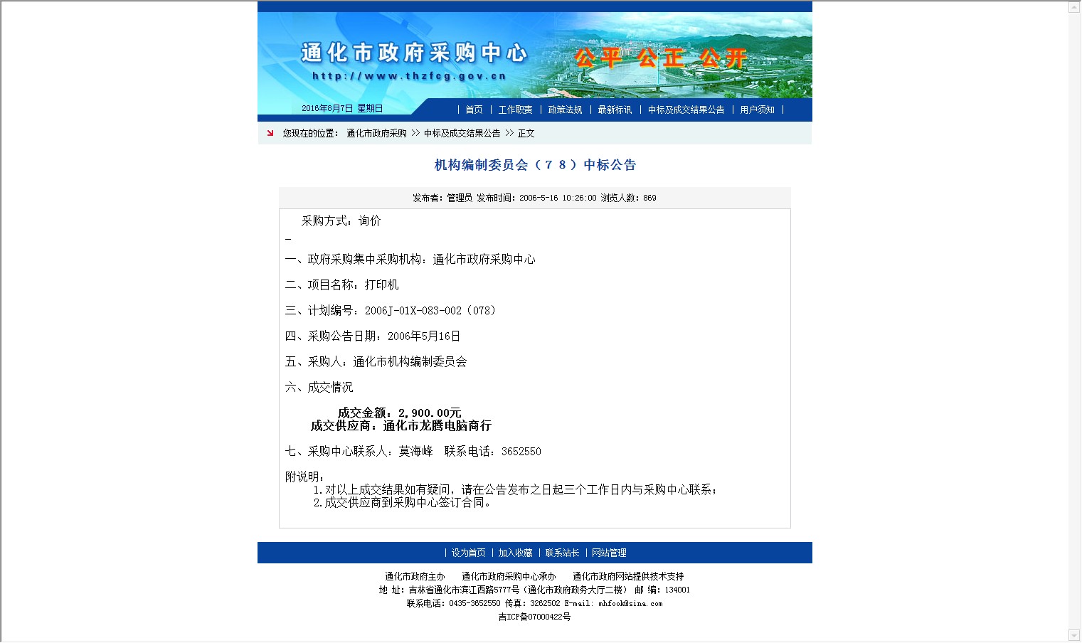 【网站说明】通化市政府采购中心-通化市政府采购-最新标讯