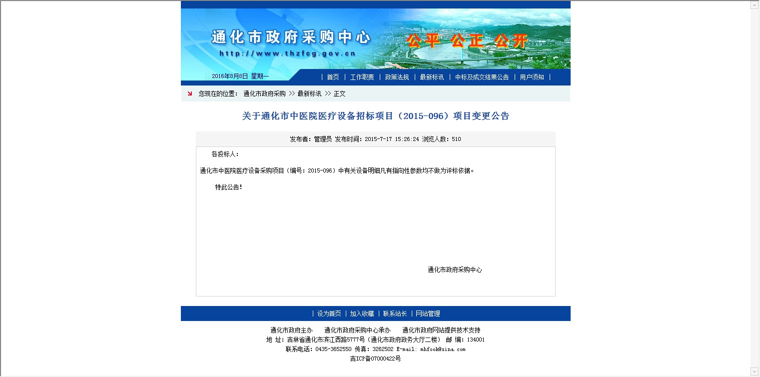 【网站说明】通化市政府采购中心最新标讯