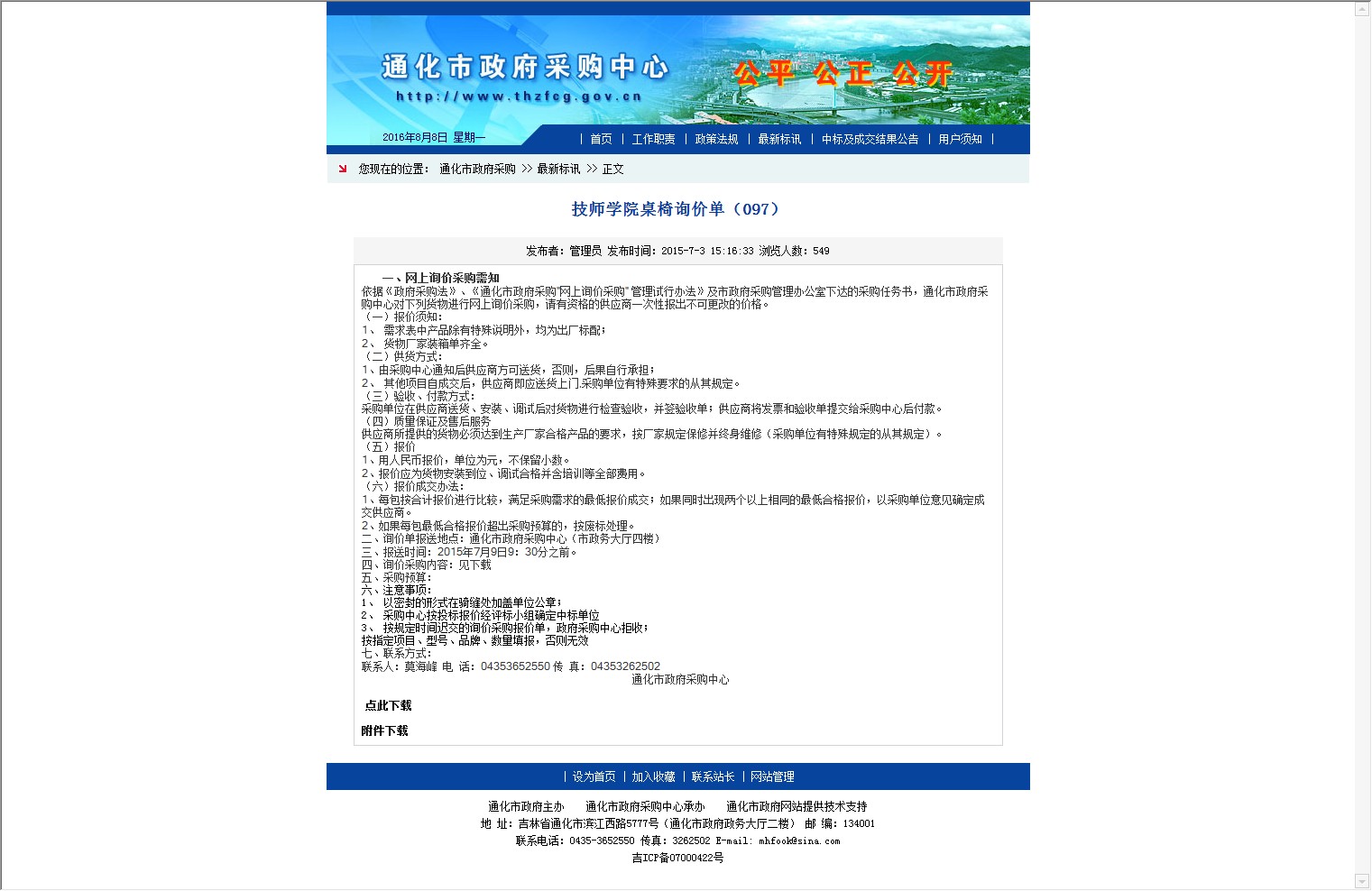 【网站说明】通化市政府采购中心最新标讯