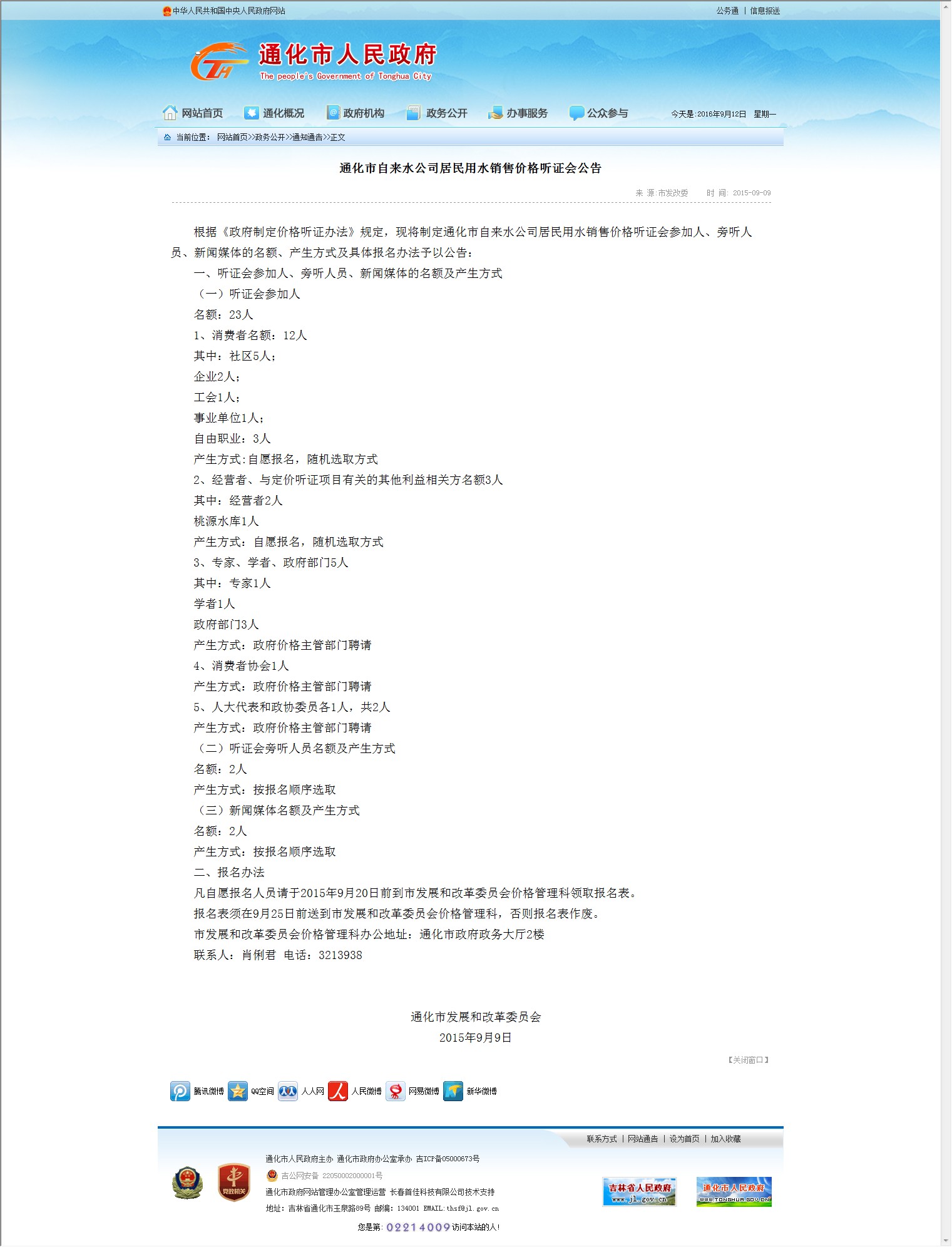 - 6、居民用水销售价格听证会二次公告 作者:通化市发展和改革委员会 年份:暂无