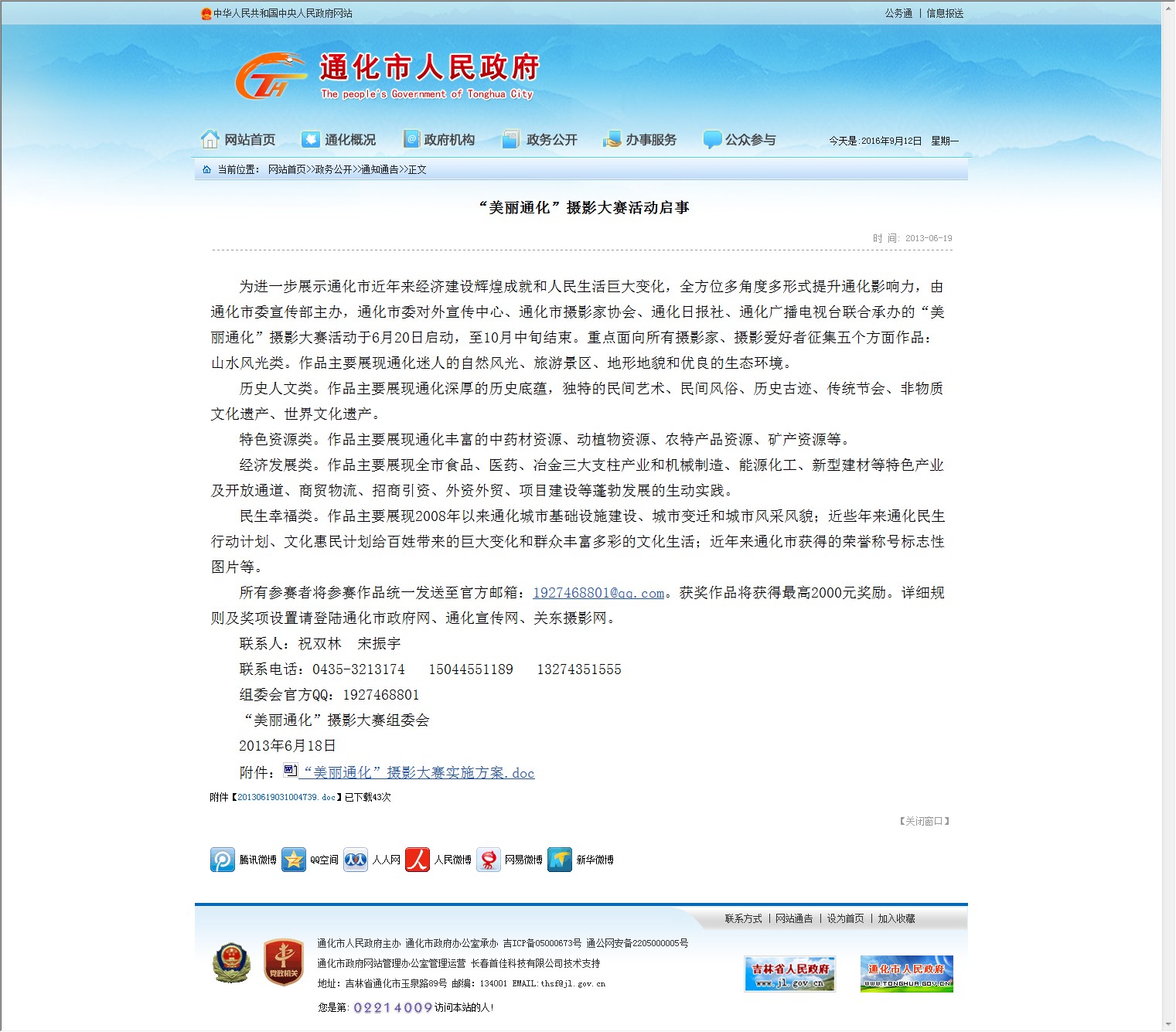 【网站说明】通化市人民政府