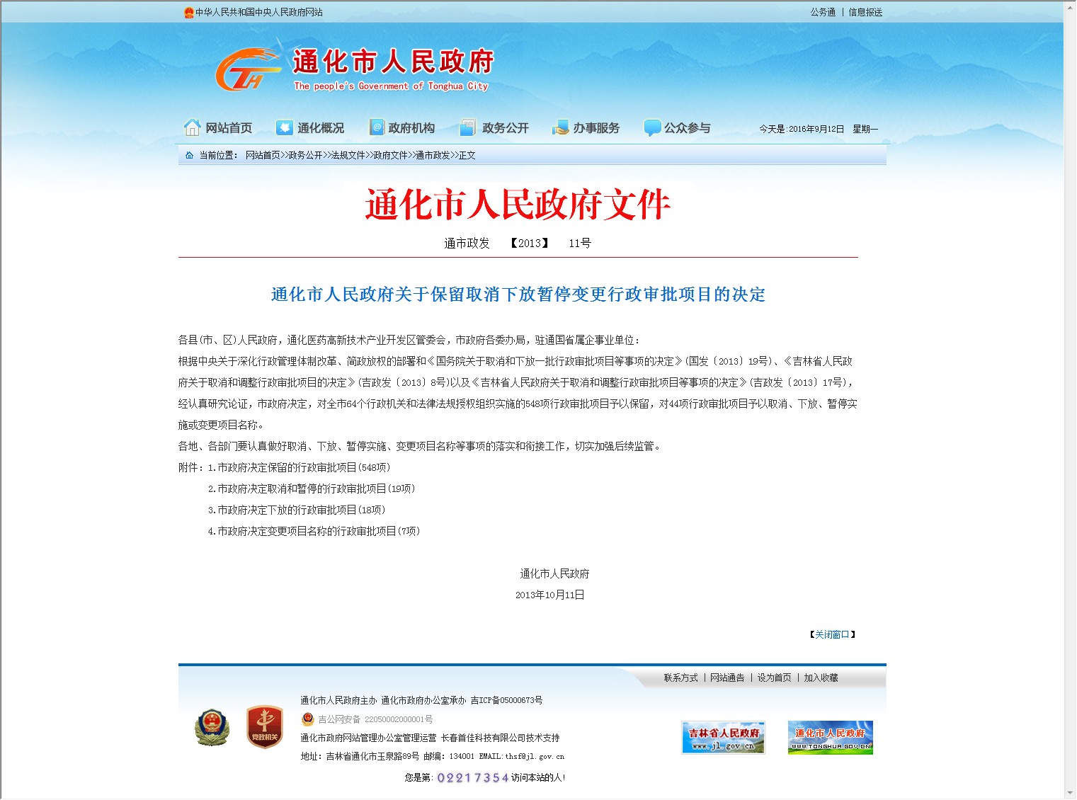 【网站说明】通化市人民政府