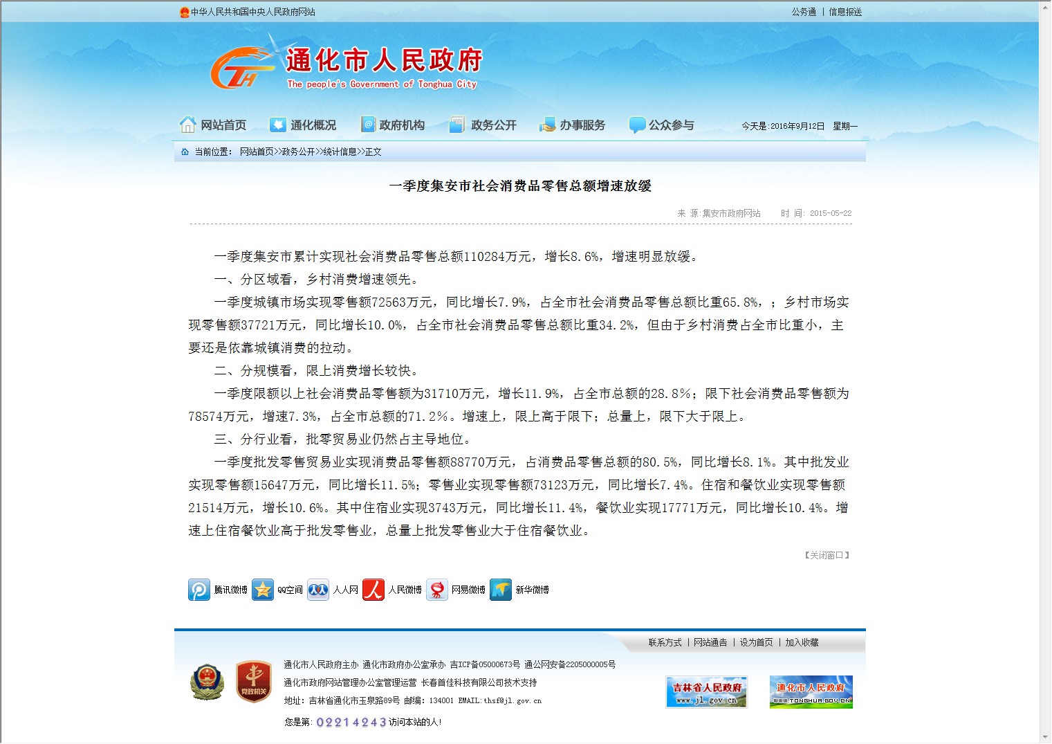 【网站说明】通化市人民政府