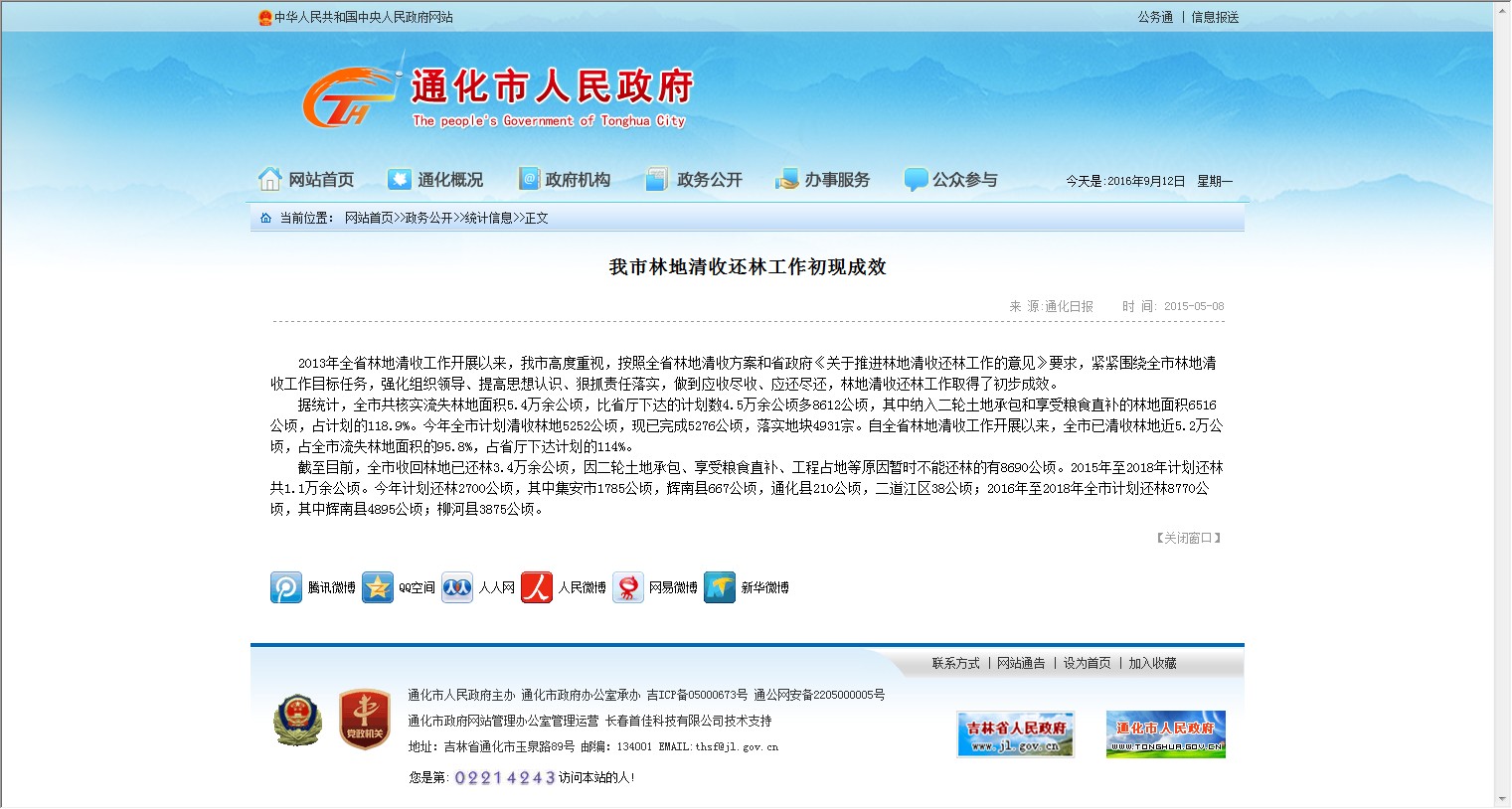 【网站说明】通化市人民政府