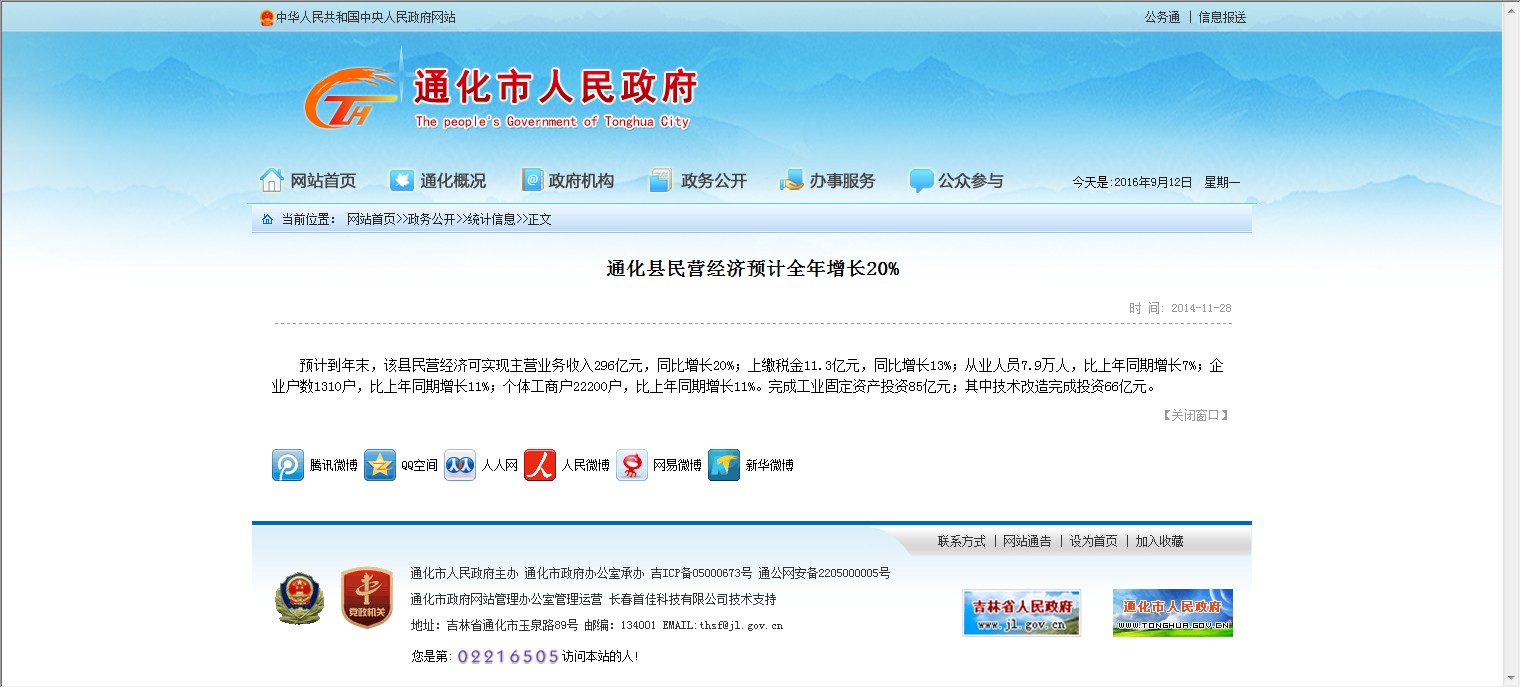 【网站说明】通化市人民政府