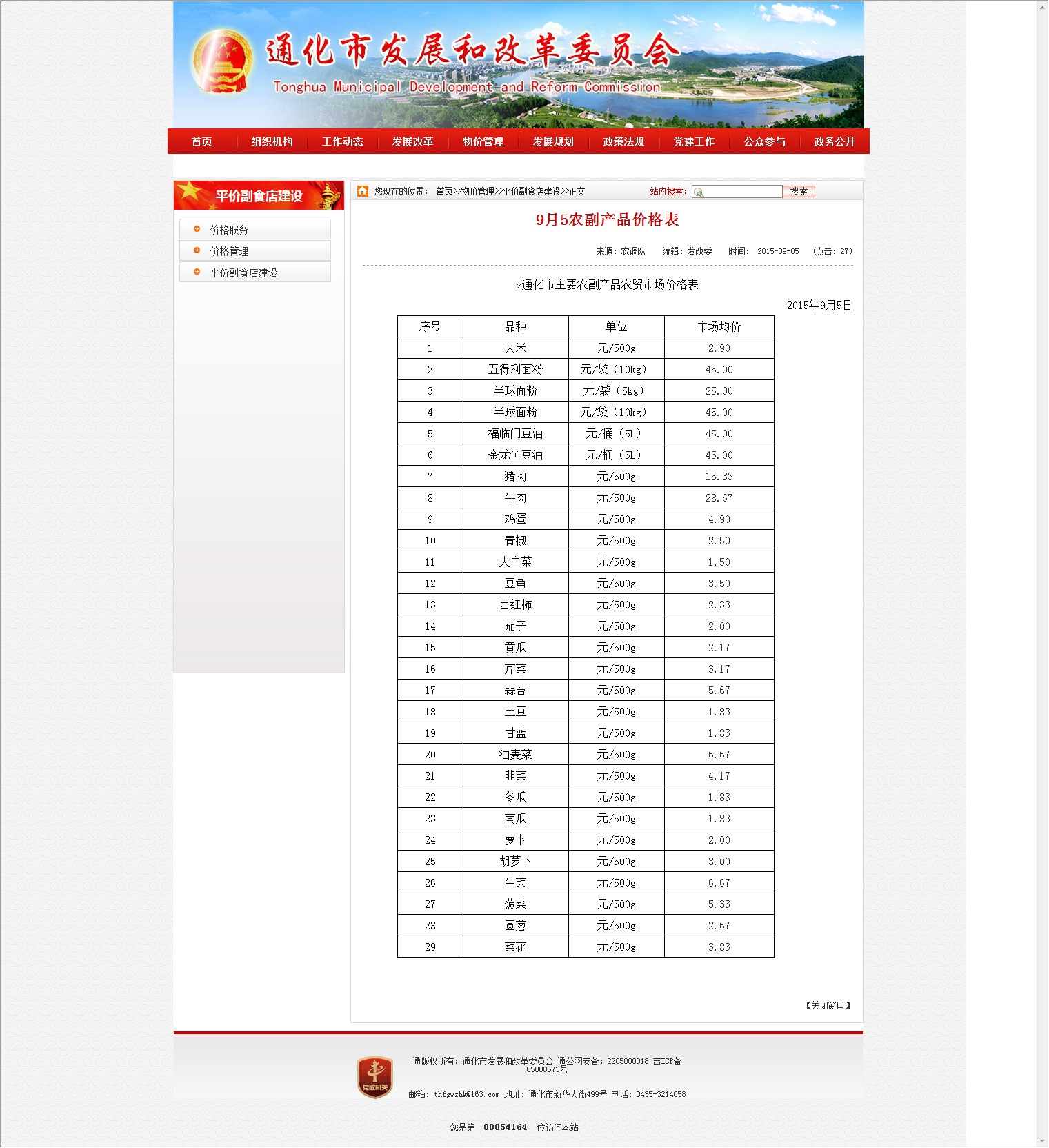 9月5农副产品价格表