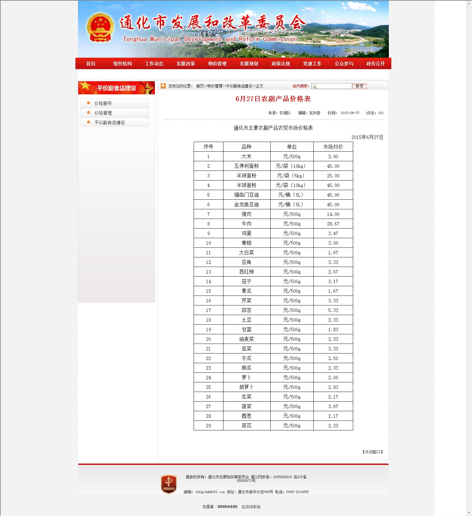 6月27日农副产品价格表