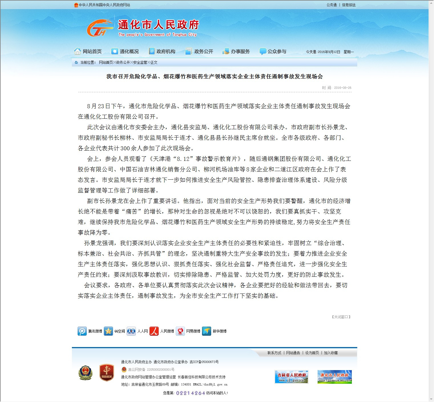 【网站说明】通化市人民政府