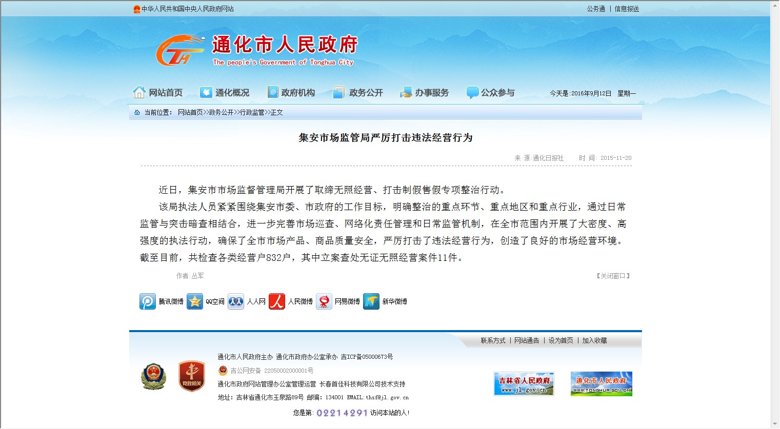 【网站说明】通化市人民政府
