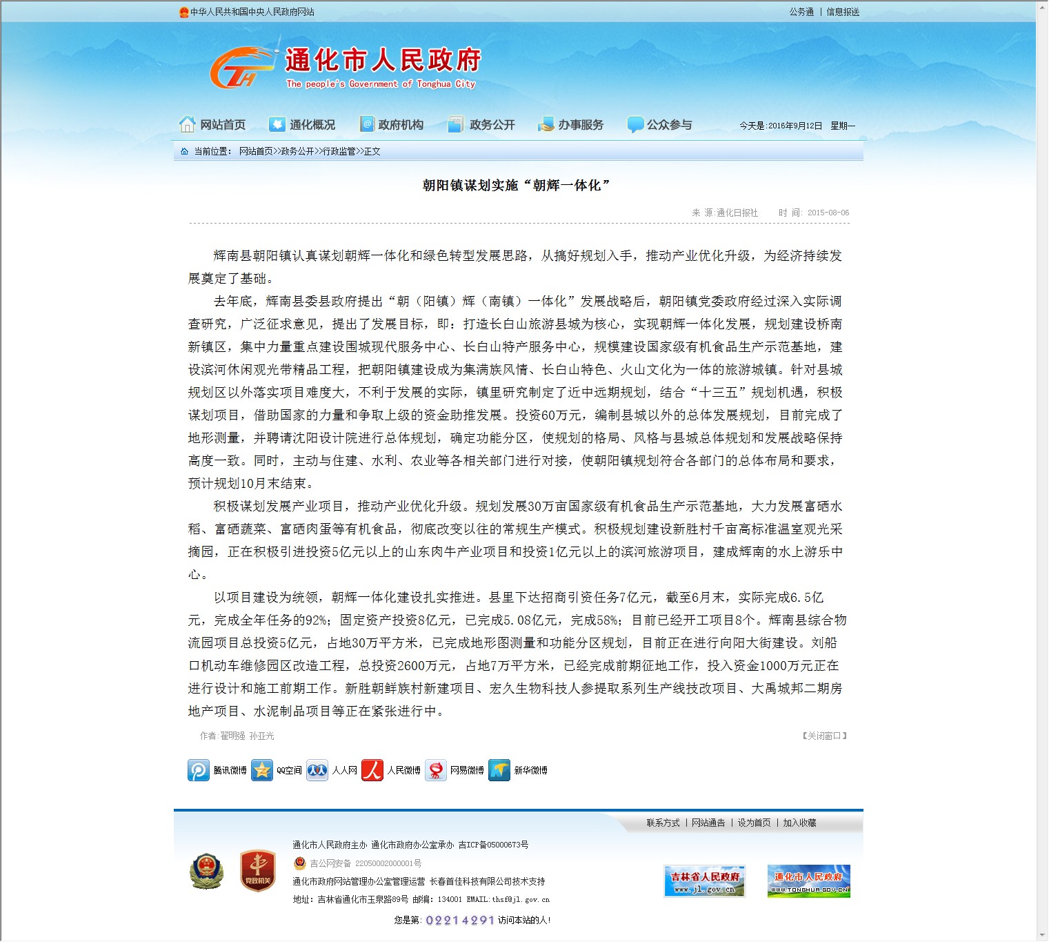 【网站说明】通化市人民政府