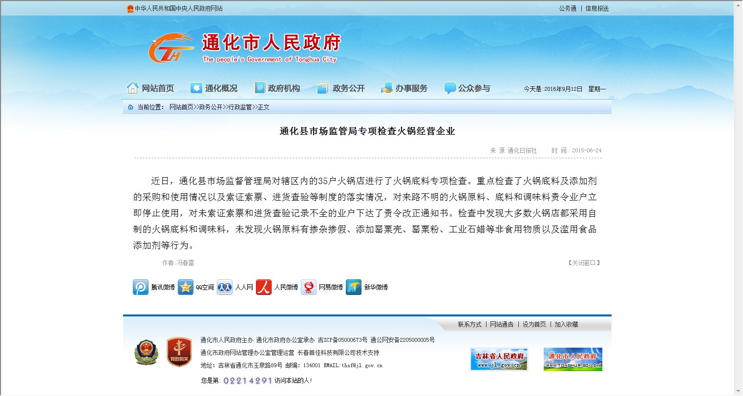 【网站说明】通化市人民政府