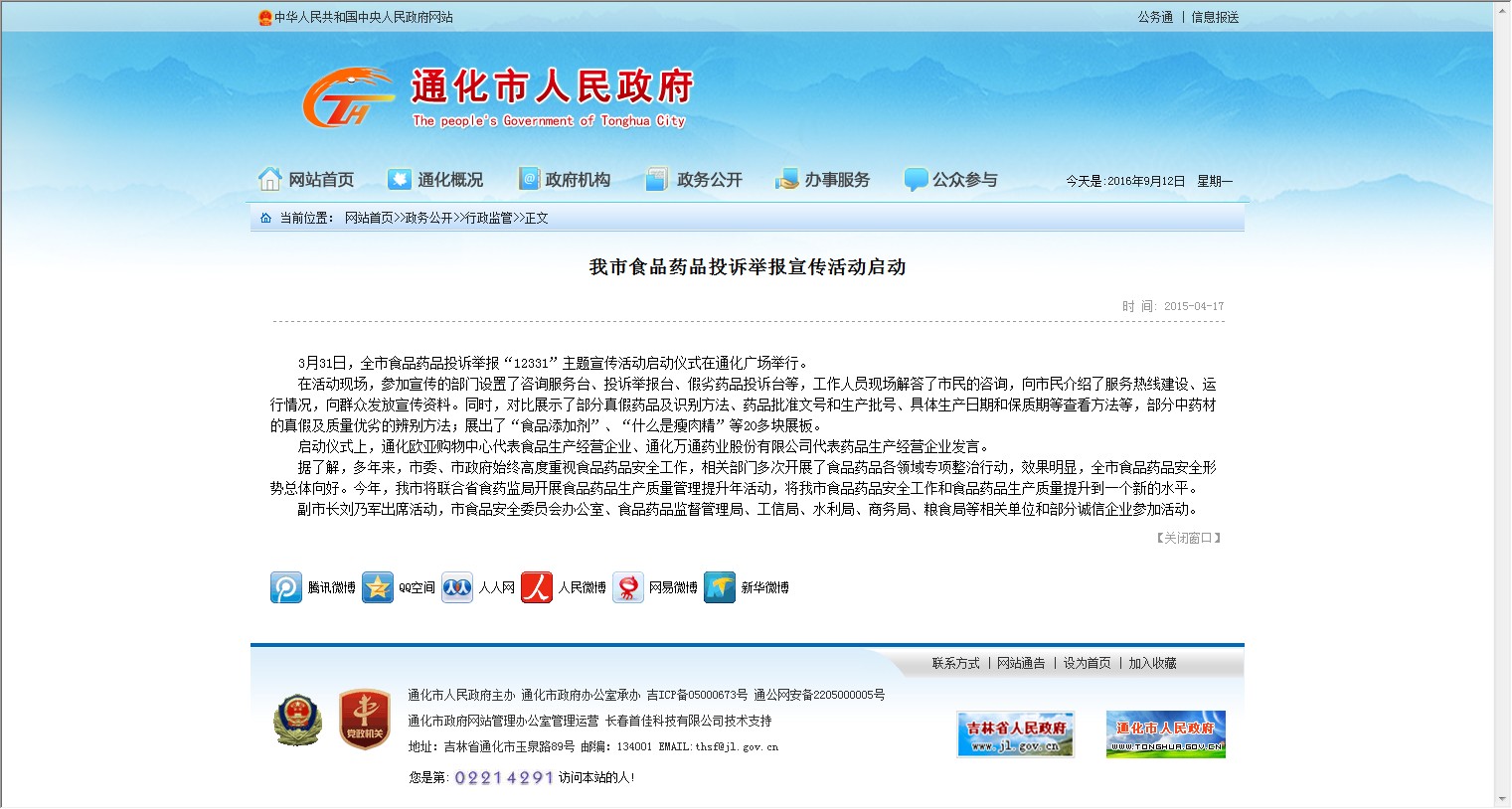 【网站说明】通化市人民政府