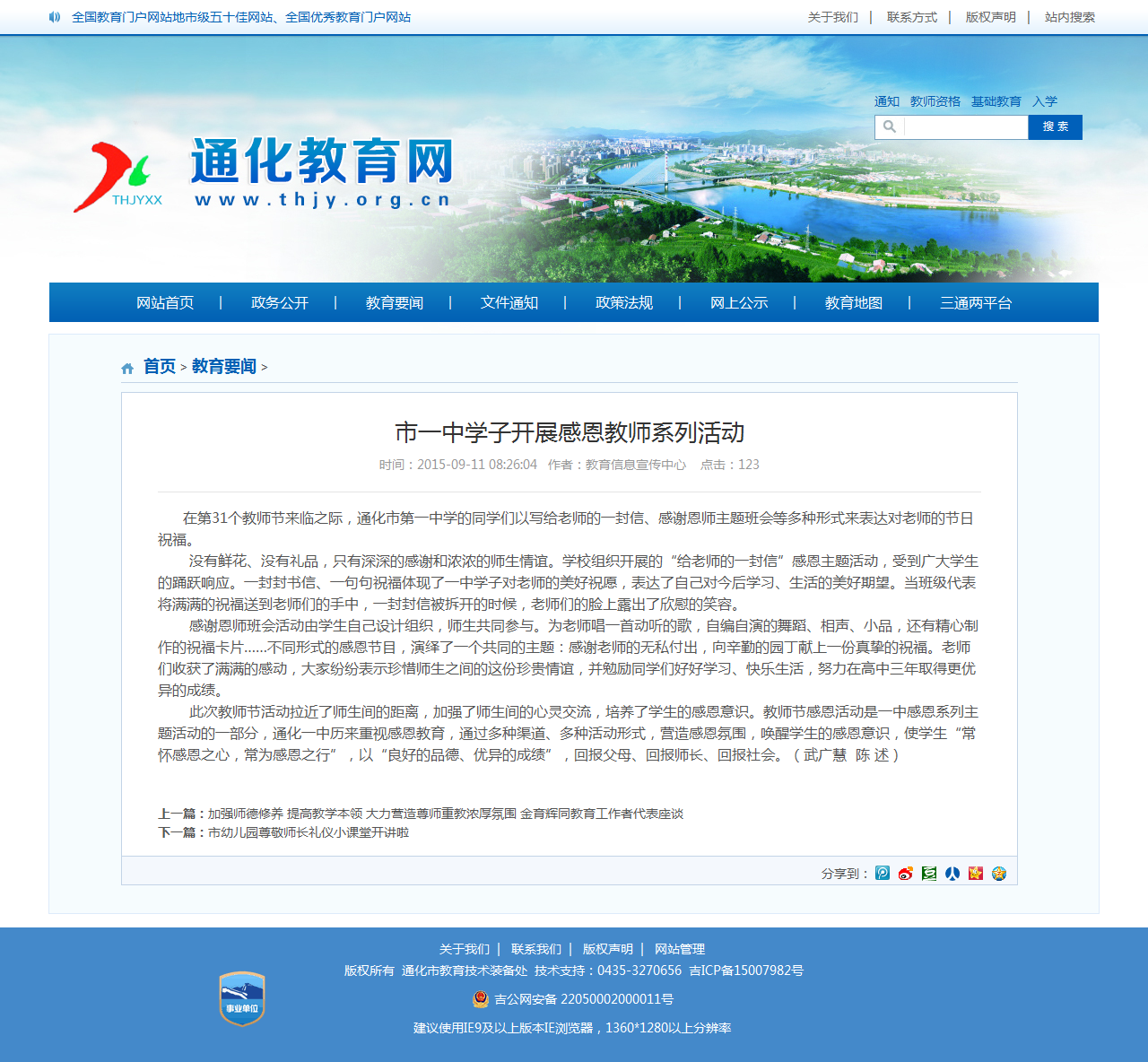 - 1、通化市第二十中学开展感恩主题教育活动 年份:暂无