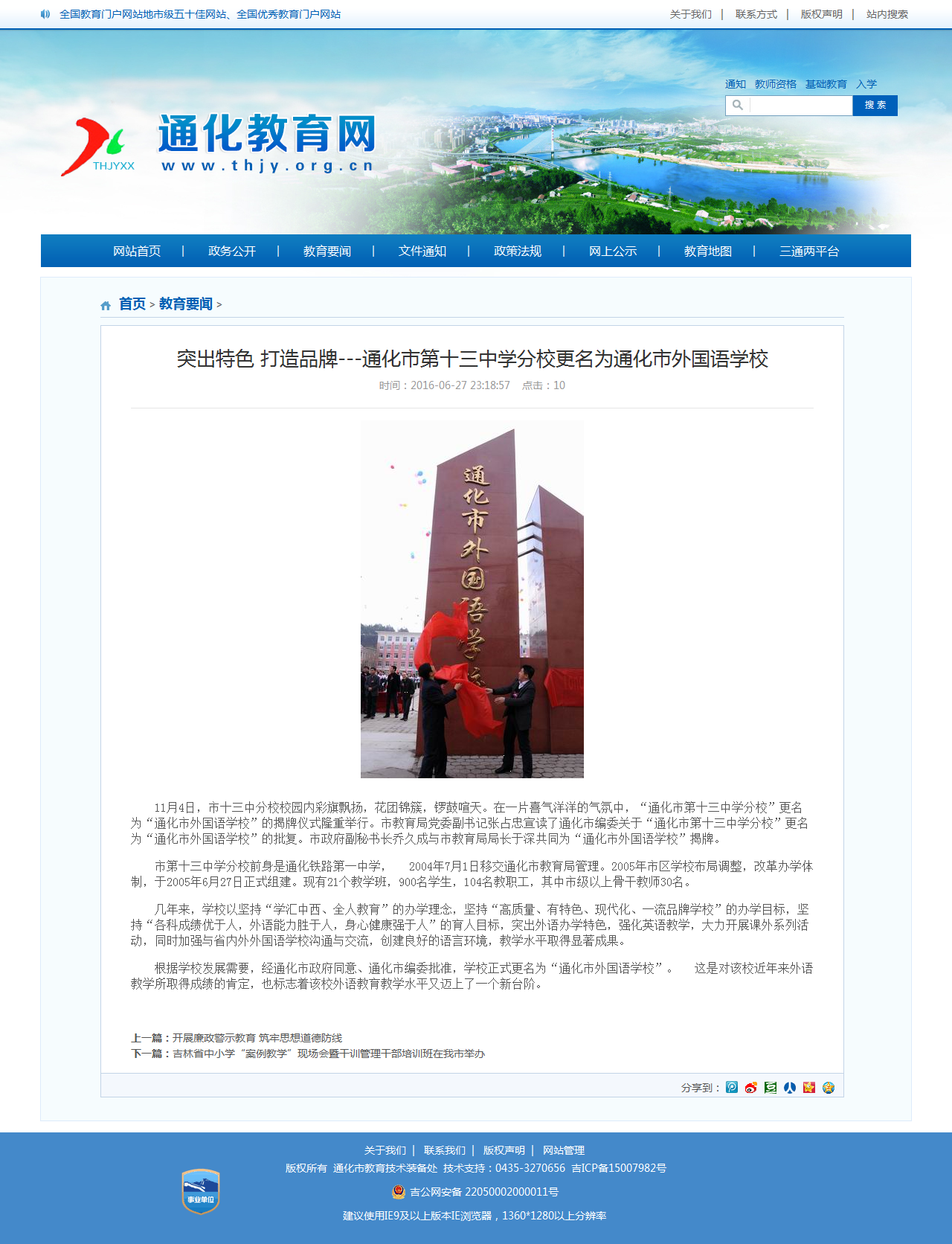 【网站说明】通化市教育局