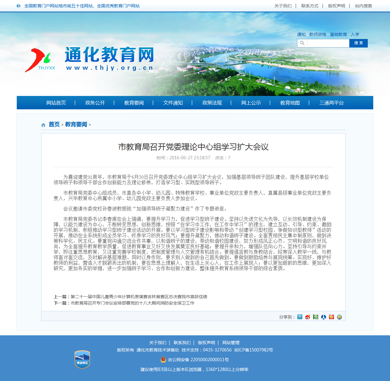 【网站说明】通化市教育局