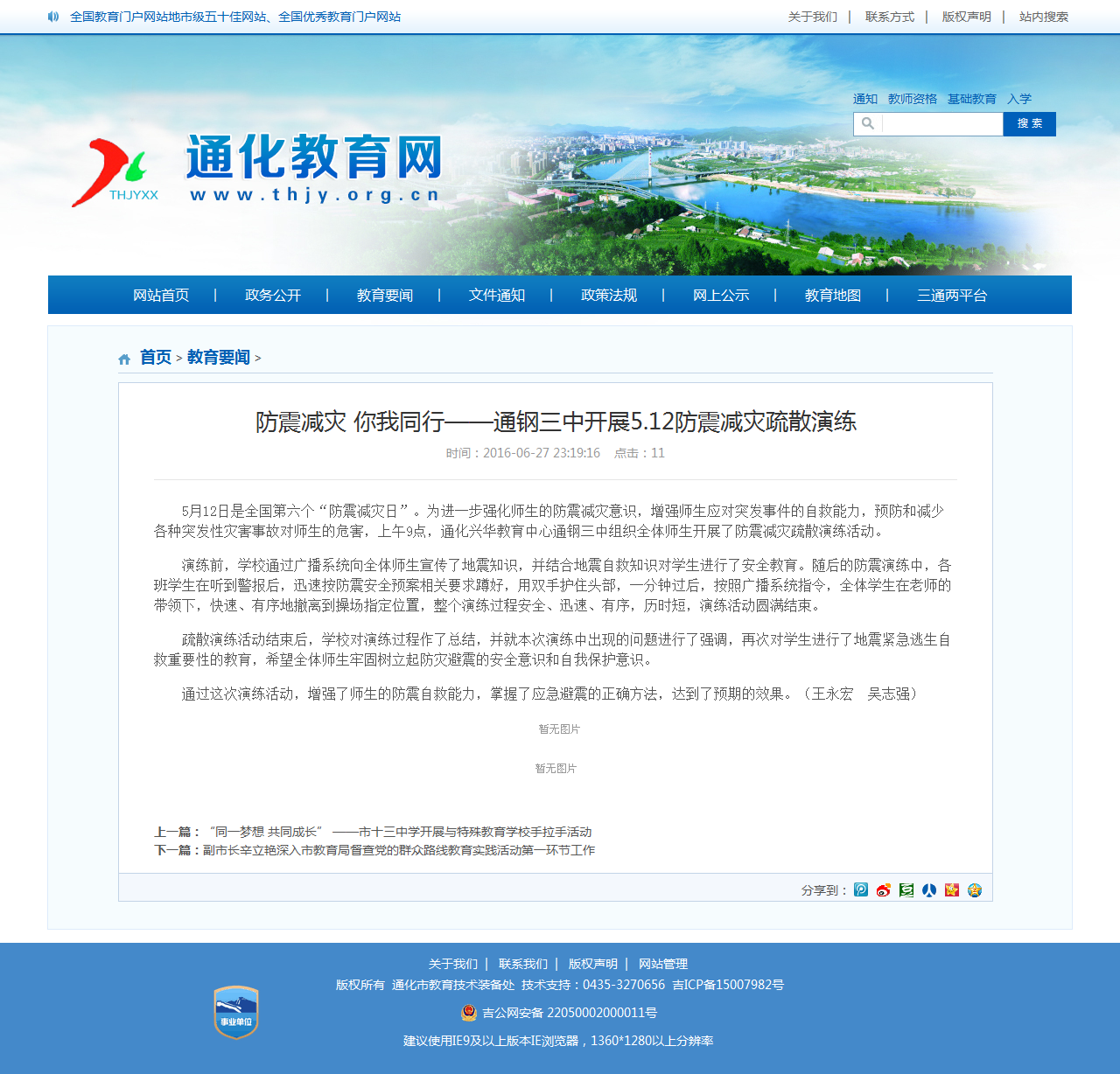 - 2、通化市教育局召开防震减灾工作观摩会 年份:暂无