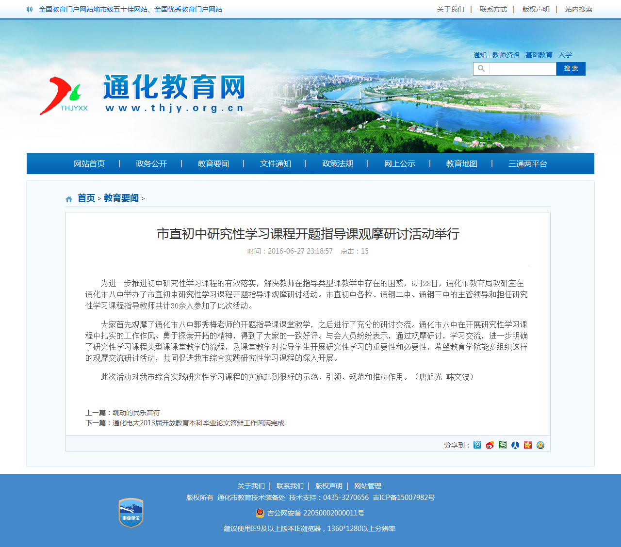 - 1、通化市教育局教研室组织开展二十中优秀校本课程展示观摩研讨活动 年份:暂无