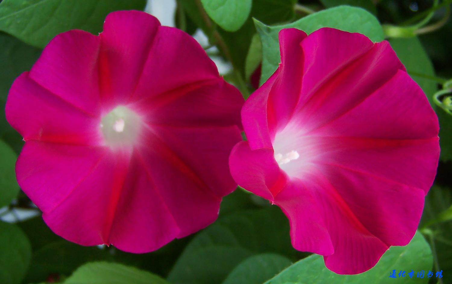 形态特征 一年生草本,全株被粗硬毛。茎缠绕,多分枝。单叶互生,心形,长5~12cm,有掌状脉,顶端尖,基部心形,叶柄长4~9cm。花序有花1~5;花序梗与叶柄近等长,小花梗伞形,结果时上部膨大;苞片2,条形,萼片5,卵状披针形,长1.2~1.5cm,顶端钝尖,基部有粗硬毛;花冠漏斗形,紫红、淡红或白色,长4~5cm,顶端5浅裂;雄蕊5,不等长,花丝基部有毛;子房3室,花柱枝3,顶端呈头状。蒴果球形。种子卵状圆形,无毛。花期7~8月;果期8~9月。