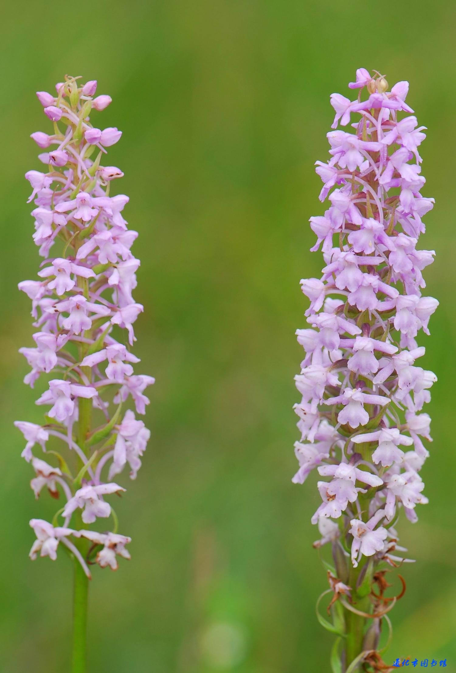 形态特征 植株高35~46cm。具肉质肥厚块茎,径2cm左右,掌状分裂。茎基部具2~3枚叶鞘;中部以下具3~5片叶,下部两叶较大,椭圆状卵形或倒卵状匙形,长13~16cm,宽2~7cm;上部叶披针形,向上渐小如苞片状。总状花序,长圆柱形,长6~13cm,花密生;花粉红色;中萼片宽卵形或卵状披针形,长4~5mm;侧萼片斜卵形,先端钝;花瓣比萼片宽,与中萼片近等长,边缘细齿状;唇瓣宽倒卵形或菱形,长约5mm,先端3裂,中裂片较大;花距细长,弧形弯曲;蕊柱短,花药生于蕊柱顶端,花粉块具细长柄,具粘盘;蕊喙小;柱头近棒状;子房纺锤形。蒴果长圆形,无柄。花期6~7月;果期8~9月。