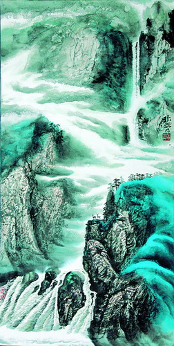 白山绿水长(国画)张珍荣作