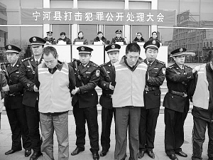 随后,分局又派出精干警力,在10天之内侦破了两起杀人重案。高坨村的李某为还赌债而抢钱,并将本村开商店的母子二人杀害,案发次日,李某就被宁河分局民警抓获归案。今年1月26日凌晨,大龙湾村的杨某因“六合彩”一事与回家放寒假的大学生赵某发生争执,杨某将赵某伤害致死。为了灭口,杨某父子又将赵某的母亲、姨母杀害。案发后,民警夜以继日地排摸,很快将犯罪嫌疑人杨某父子抓获归案。