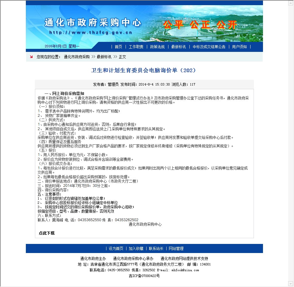 【网站说明】通化市政府采购中心