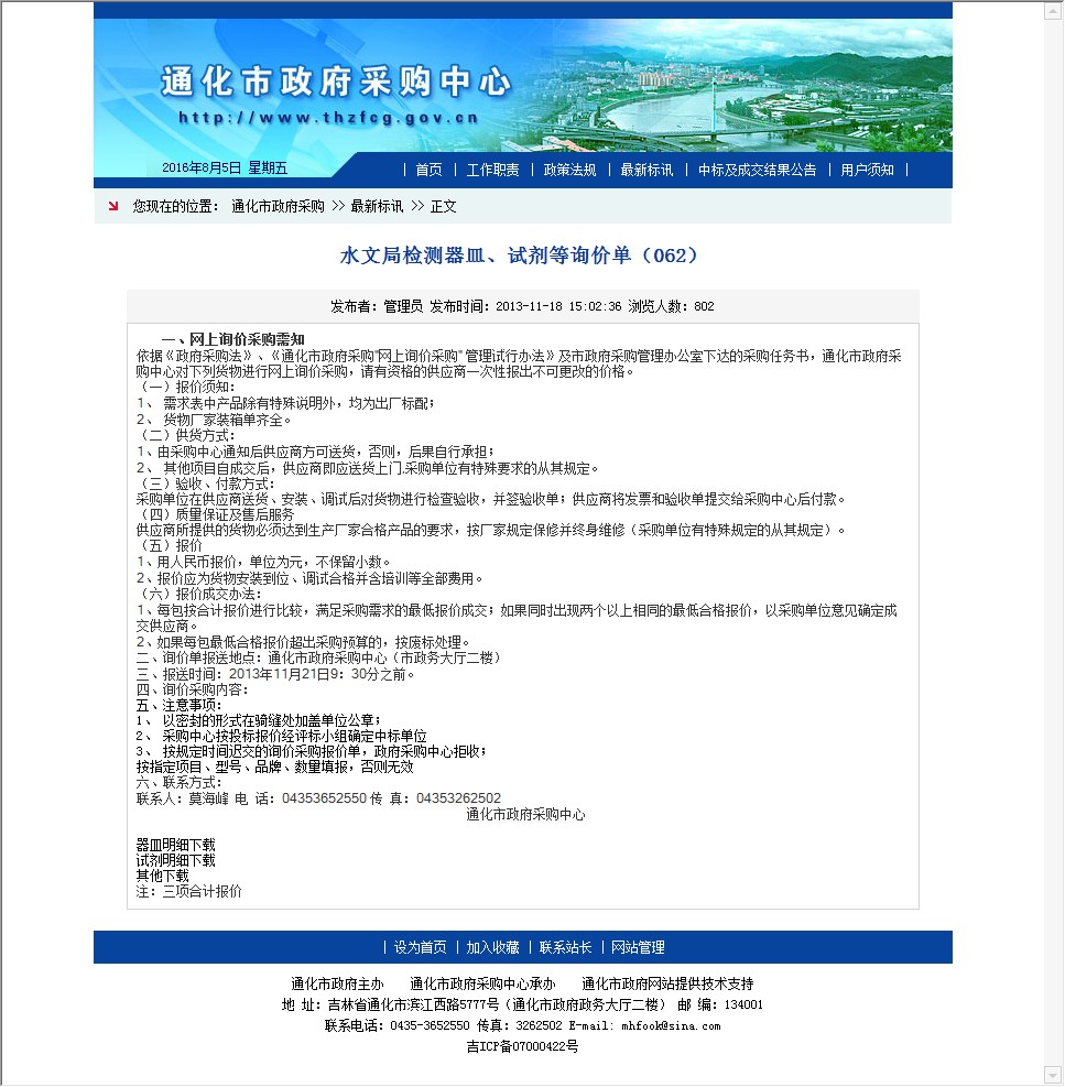 - 2、水文局化学试剂等询价单001 作者:通化市政府采购中心 年份:暂无