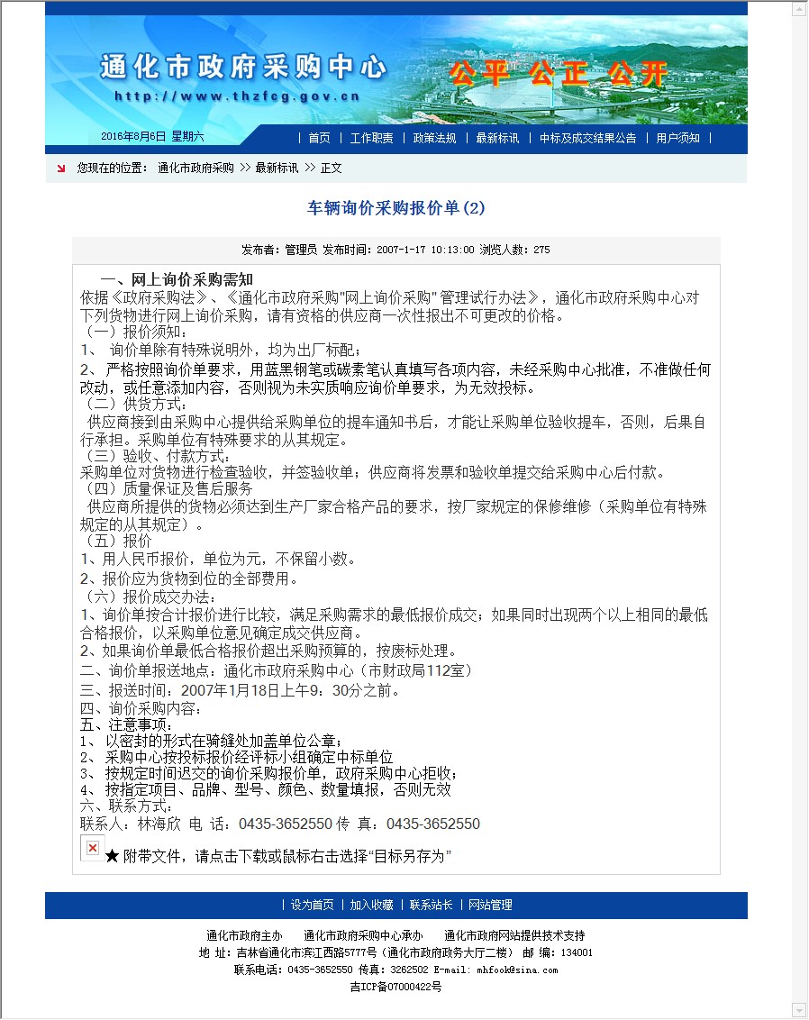 【网站说明】通化市政府采购中心--最新标讯
