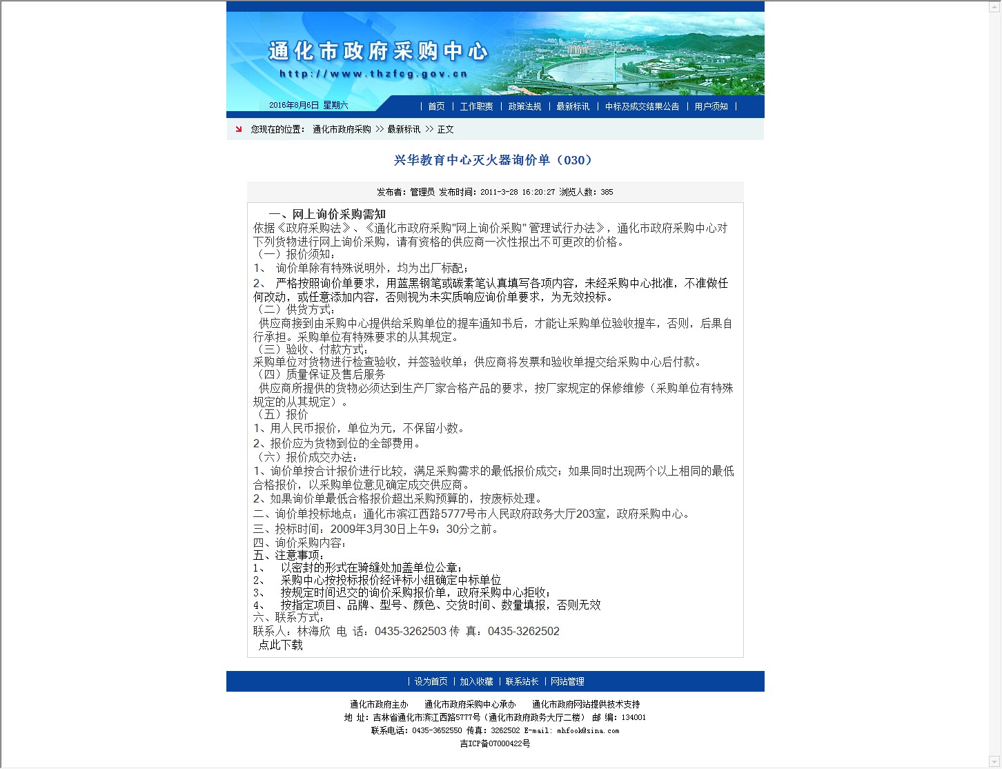 【网站说明】通化市政府采购中心-最新标讯