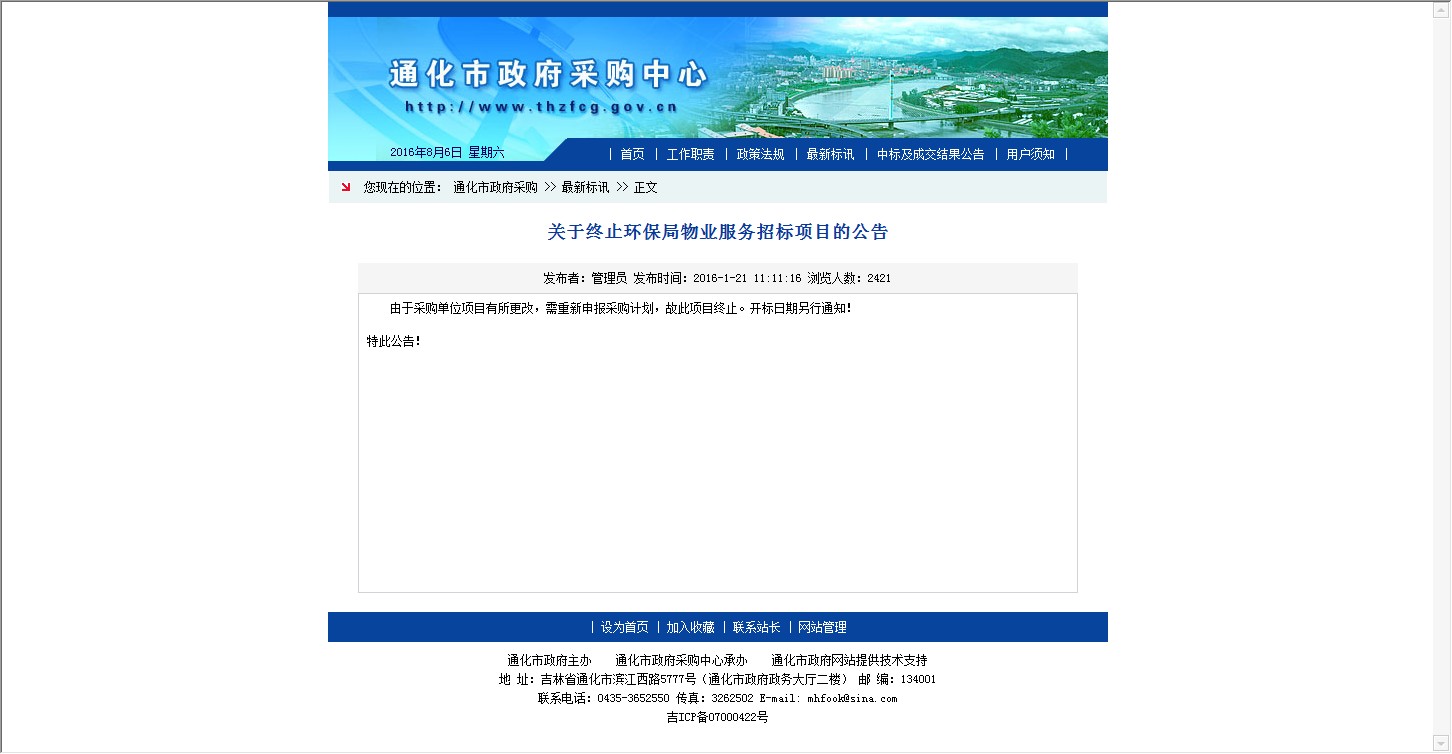 - 6、吉林省通化市环保局物业管理服务竞争性磋商采购公告 年份:暂无
