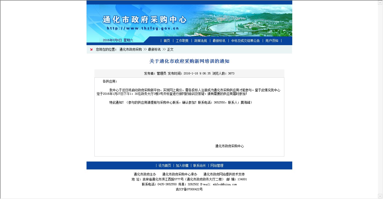 【网站说明】通化市政府采购中心-通化市政府采购-最新标讯