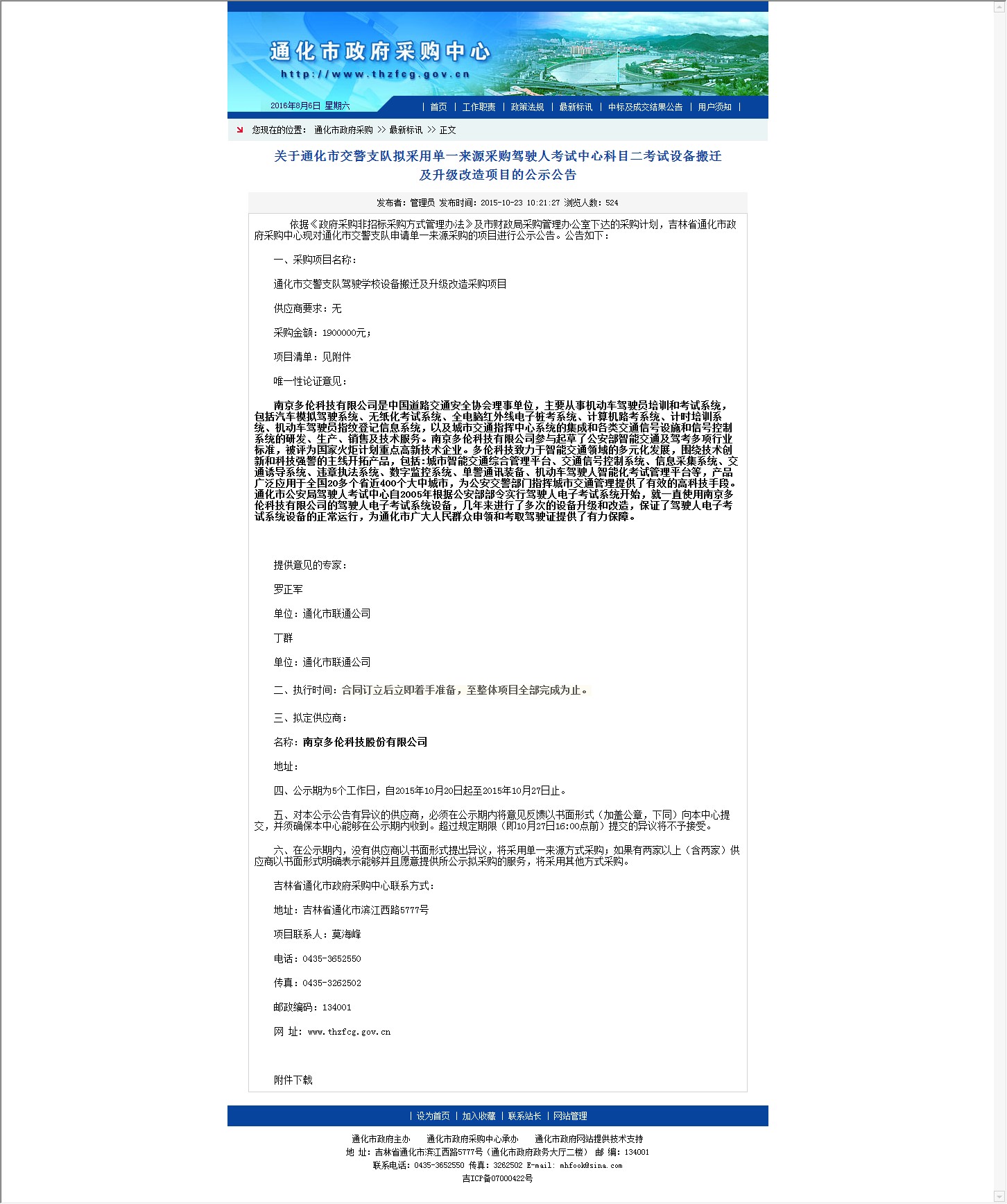 关于通化市交警支队拟采用单一来源采购驾驶人考试中心科目二考试设备搬迁及升级改造项目的公示公告