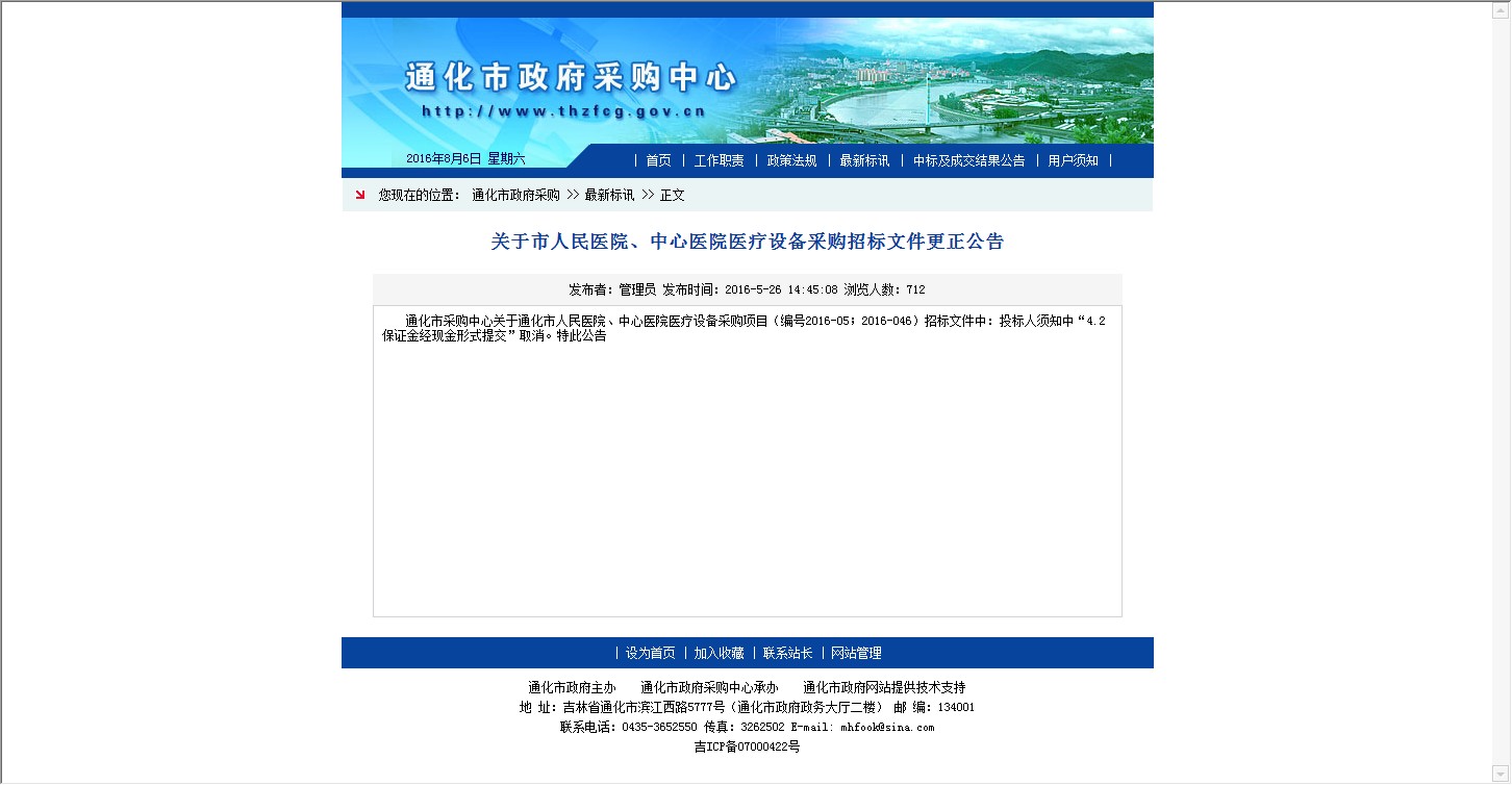 - 1、吉林省通化市人民医院医疗设备采购项目公开招标公告更正公告 年份:暂无