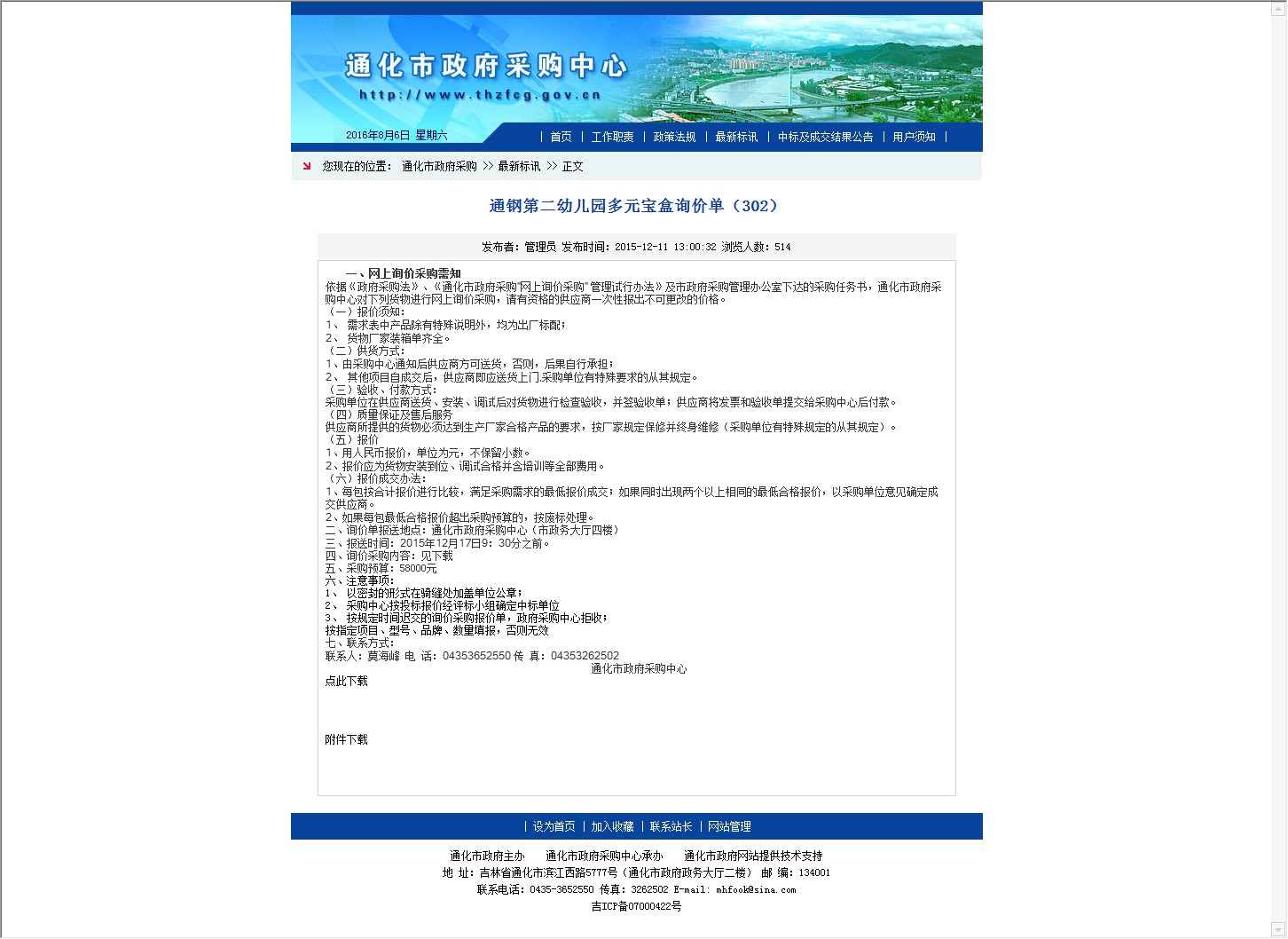 - 5、通钢二幼儿园摄像机询价单(293) 作者:通化市政府采购中心 年份:暂无