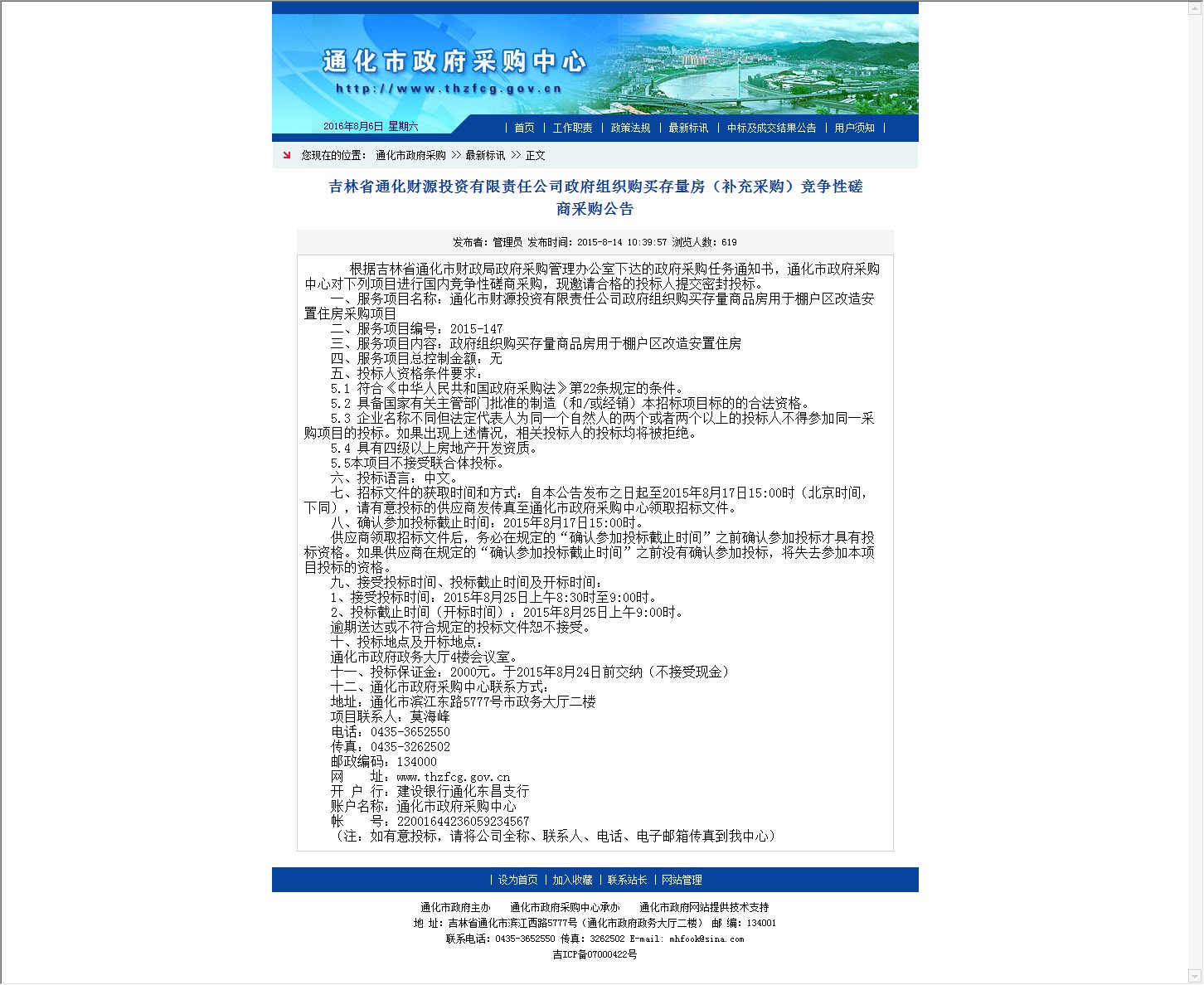【网站说明】通化市政府采购中心-通化市政府采购-最新标讯