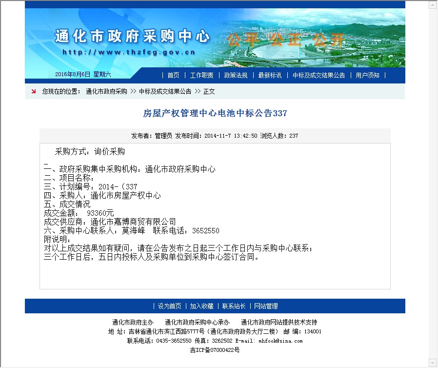 【网站说明】通化市政府采购中心