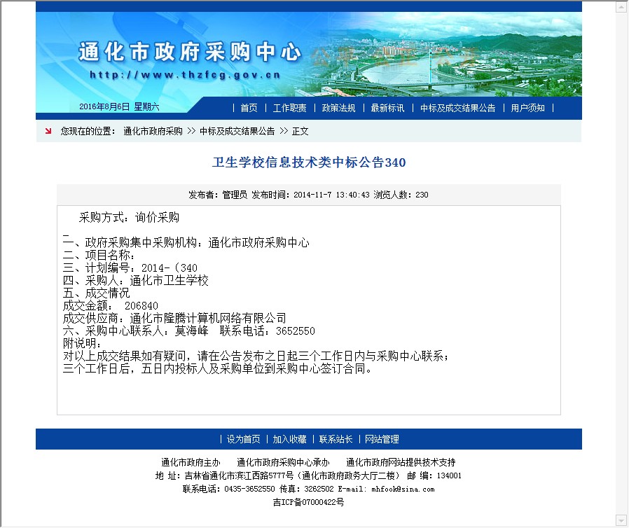 【网站说明】通化市政府采购中心