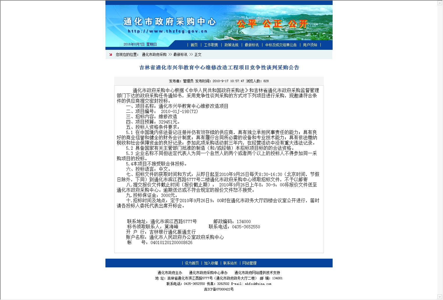 【网站说明】通化市政府采购中心