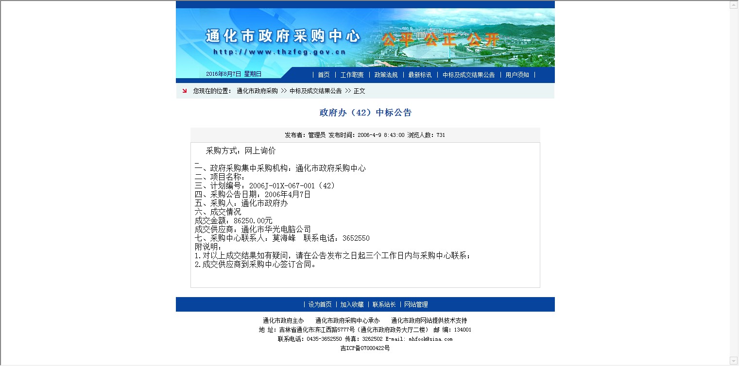 【网站说明】通化市政府采购中心-通化市政府采购-最新标讯
